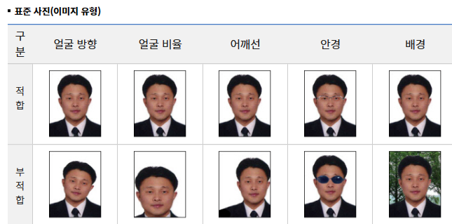 - 얼굴 방향은 정면을 응시하고 기울어지지 않은 사진