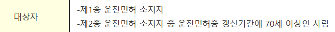 단 운전면허시험 합격일에 65세 이상 75세 미만인 분들은 5년 75세 이상인 분들은 3년, 한쪽 눈만 볼 수 있는 분들은 3년 이렇게 주기가 나누어져 있습니다.