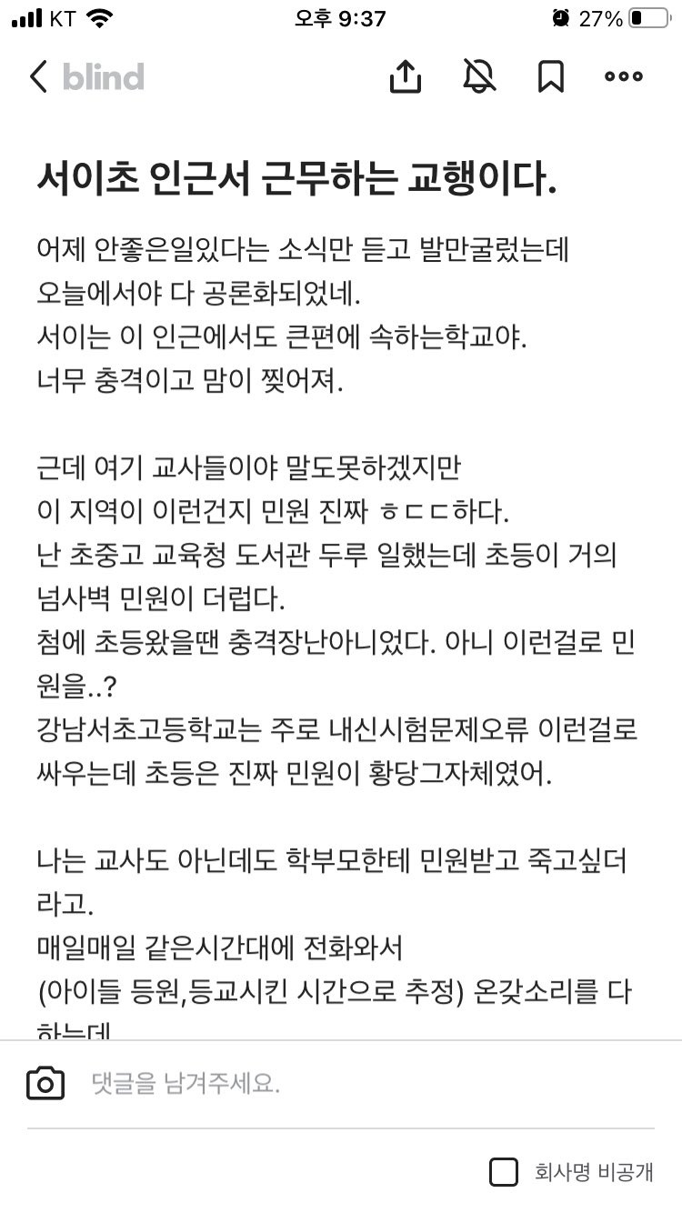 서울의 초등학교 소속의 20대 교사가 극단적 선택을 했습니다.