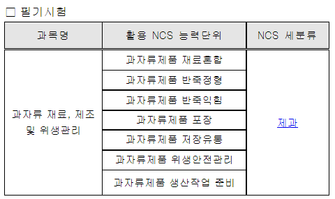 제과기능사의 시험 품목은 아래와 같으니 꼭 참고 하셔서 무슨 시험이 있는지 확인하시길 바랍니다.
