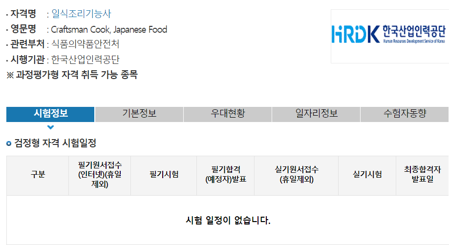 일식조리기능사 자격증은 식품의약품안전처가 관련부처이지만 시험을 시행하는 기관은 한국산업인력공단에서 시행하게 됩니다.