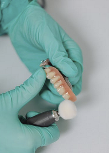 2. 모형을 바탕으로 틀니를 제작합니다. 제작된 틀니는 임시적으로 입어보고, 맞춤을 조절합니다.