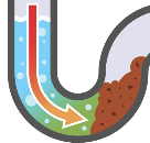 U자관 속 물 마름 | 냄새를 막는 **수봉(水封)**이 사라지면 역류 |