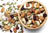 견과류는 **좋은 지방(불포화지방산)**과 식이섬유, 식물성 스테롤이 풍부해