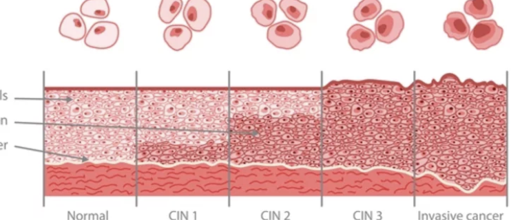 | 자궁경부 이형성증 | 전암 단계 | 세포 변화만 있고 암세포는 아님 |